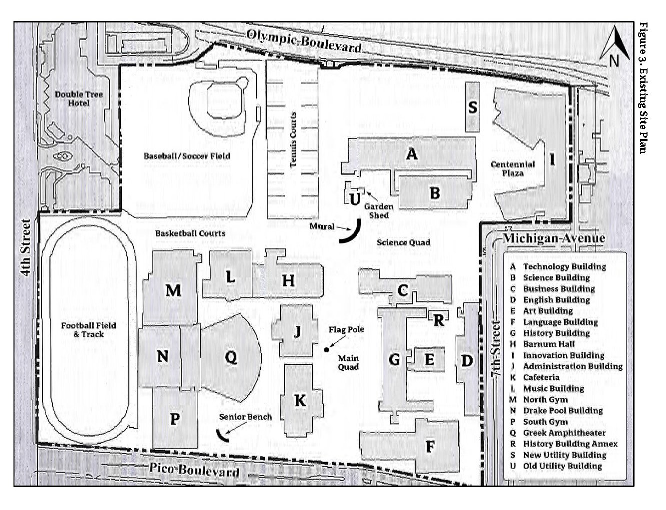 Three stair cores are positioned around the building’s perimeter to maximize uninterrupted floor area. A fourth stair, combined with bleacher seating, cascades down through the central outdoor courtyard (see Figure 1).